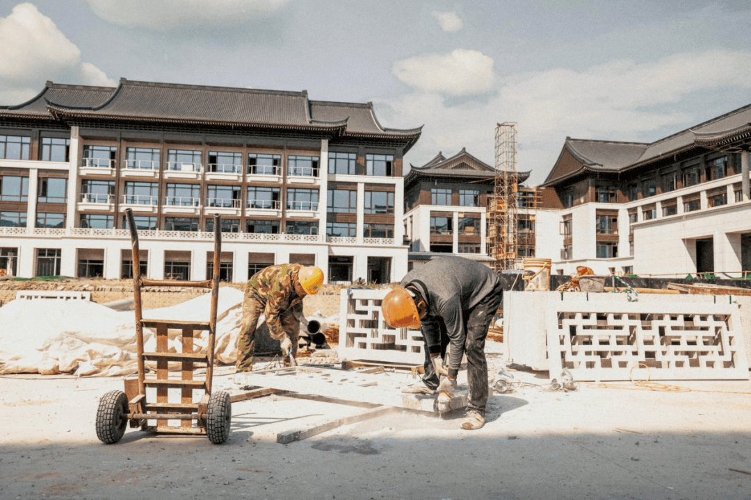 飛龍山莊項目13棟主體結構全部結頂,外幕墻石材及鋁板干掛、門窗玻璃安裝基本完成,室內裝修基層木作、石材安裝有條不紊地施工中,完成投資額1.4億。
